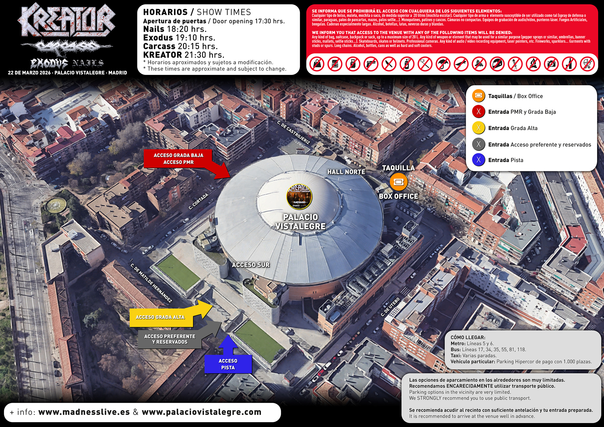 If you have reduced mobility, you must write to help@madnesslive.es to process your ticket purchase (purchasing tickets in seats reserved for people with reduced mobility is strictly prohibited). Proof of age must be provided via official document on the day of the event.