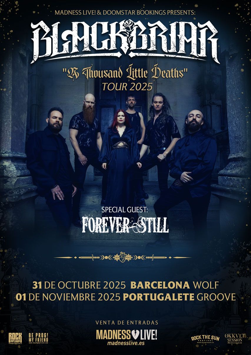 El embrujo de Blackbriar regresará a nuestros escenarios este otoño con una gira que promete sumergirnos en su universo de belleza oscura y cuentos encantados. La banda holandesa llegará a España con dos fechas imprescindibles: el 31 de octubre en la Groove de Portugalete y el 1 de noviembre en la sala Wolf de Barcelona, acompañados por los daneses Forever Still como invitados especiales.