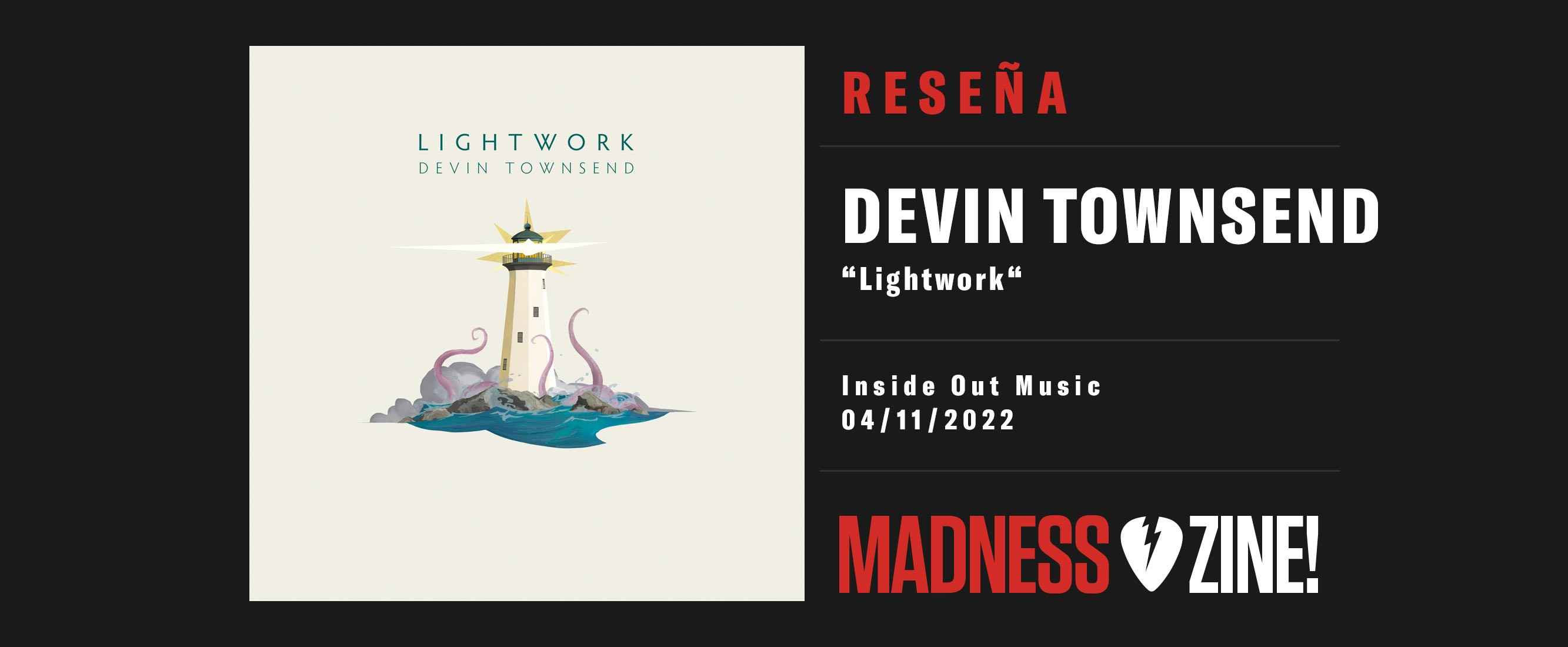 Hace menos de un año que intenté hacer un repaso a buena parte de la discografía de Devin Townsend, un músico por el que siento auténtica devoción, siendo ésta una tarea casi imposible de llevar a cabo sin dejarse muchas cosas en el tintero, ya que la cantidad de trabajos que ha facturado el bueno de HevyDevy es enorme. Un artículo que podéis encontrar en este Madness Zine titulado como “el Alien que vino de Canadá” y en el que no pude incluir mención alguna a “The Puzzle” porque apenas lo había podido escuchar en aquel momento y menos aún a “Lightwork”, disco que salió el 4 de noviembre del año pasado de la mano de InsideOut. Pero con motivo de su inminente visita y por el amor que sentimos hacia el de Vancouver, voy a reseñar este último lanzamiento, un trabajo largo y que en su edición especial contiene dos discos claramente diferenciados y con nombre propio. “Lightwork”, más homogéneo, concebido como álbum principal y el bonus, “Nightwork”, mucho más ecléctico, variado y arriesgado por su dispar contenido.