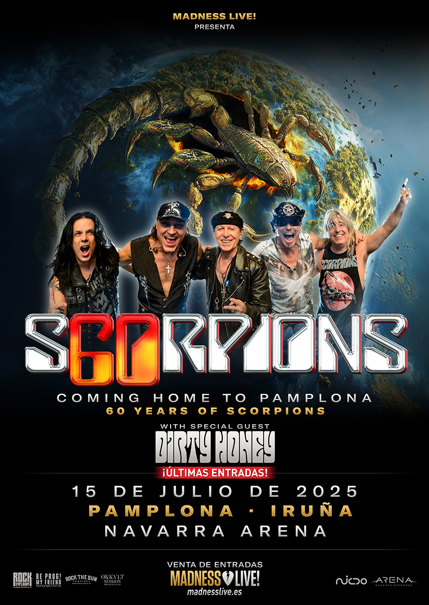 Los gigantes del hard rock Scorpions llevarán la celebración de su 60 aniversario al Navarra Arena de Pamplona el próximo 15 de julio de 2025, en un evento histórico donde podremos disfrutar de los mayores éxitos de la banda. En este show, Scorpions interpretarán los clásicos que los convirtieron en leyendas del rock, desde el himno de rebeldía "Rock You Like a Hurricane" hasta la inolvidable balada "Still Loving You" y la emblemática "Wind of Change".
