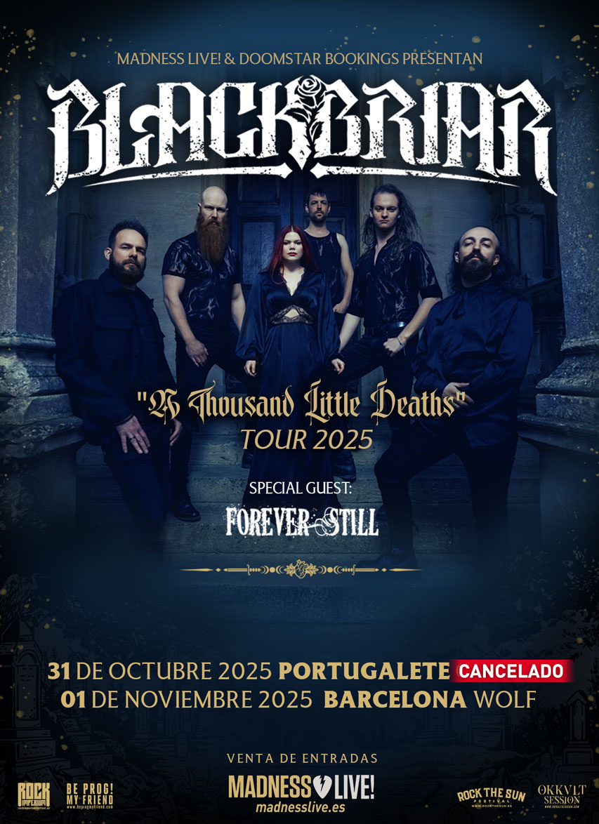 El embrujo de Blackbriar regresará a nuestros escenarios este otoño con una gira que promete sumergirnos en su universo de belleza oscura y cuentos encantados. La banda holandesa llegará a España con dos fechas imprescindibles: el 31 de octubre en la Groove de Portugalete y el 1 de noviembre en la sala Wolf de Barcelona, acompañados por los daneses Forever Still como invitados especiales.