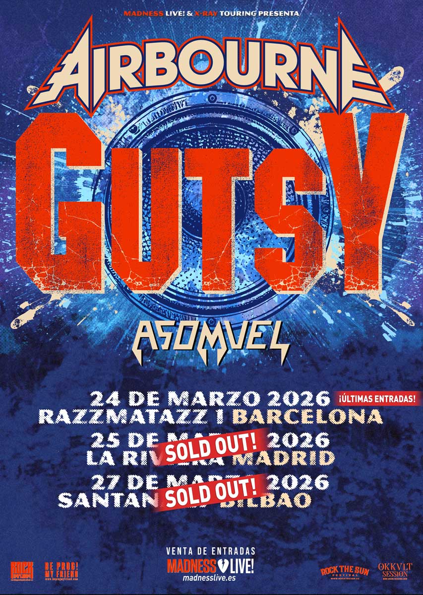 Los titanes del hard rock australiano Airbourne están de vuelta y más potentes que nunca con su nuevo single "Gutsy", su primer lanzamiento en seis años. Después de su actuación en el Rock Imperium, siguen celebrando su recientemente estrenada canción con una gira europea que incluirá tres fechas muy esperadas en España: 24 de marzo en la Razzmatazz 1 de Barcelona, 25 de marzo en La Riviera de Madrid y 27 de marzo en la Santana 27 de Bilbao.