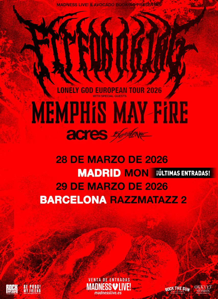 Los titanes del metalcore Fit For A King regresan a nuestro país en 2026 para presentar su esperado nuevo álbum 'Lonely God' (Solid State Records). La banda de Texas ofrecerá dos citas imprescindibles: el 28 de marzo en la sala Mon de Madrid y el 29 de marzo en la Razzmatazz 2 de Barcelona.